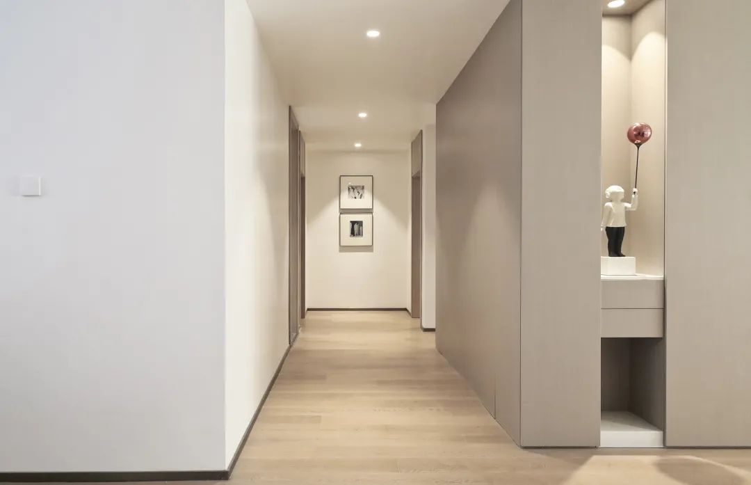 通过过道对空间的划分,空间有满有空,才会使得空间富有层次感,拐角的收纳柜留给男主人放一个最爱的手办,不管什么时候都保有一颗童趣的心。