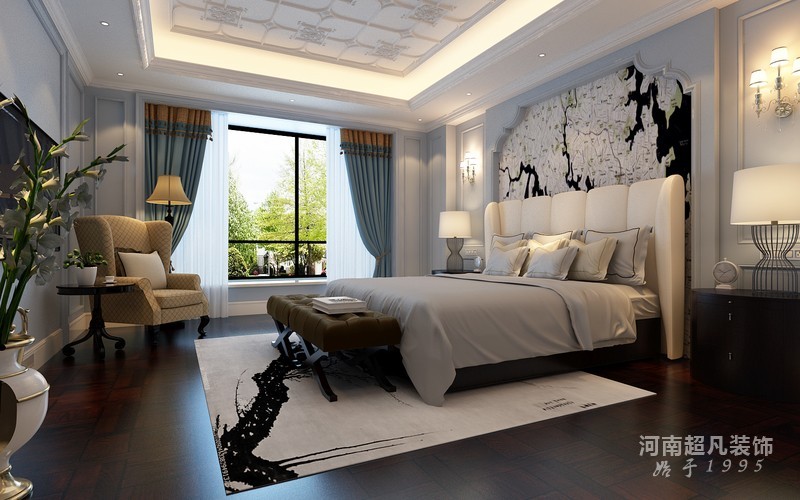 主卧墙面整体重做,以冷灰色为基底,配以暖色的床品,让空间体现出的高贵,圣洁,浪漫的氛围。