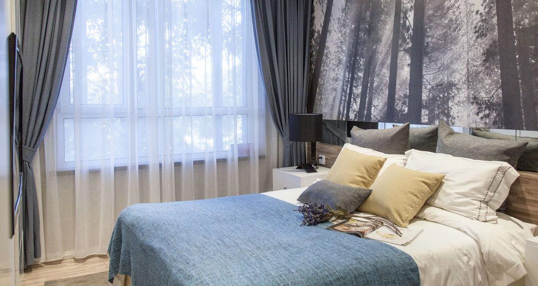 主卧面积不大,搭配简易的床头柜,空出多余空间,柔软的窗纱让空间看起来更为简单,温暖适宜睡眠。