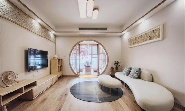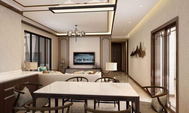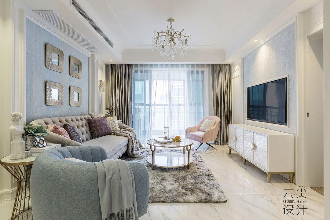 欧式讲究对成型,户型背景墙后面的卧室打破了这一点,为了美观完整,我们做了墙板造型的隐形房门对称,中间电视做了内嵌处理,这样既美观又高级。
