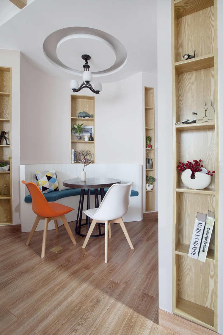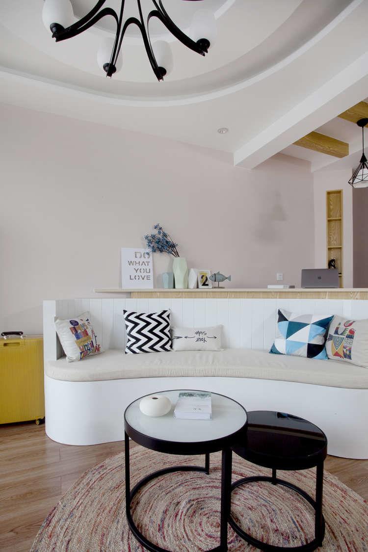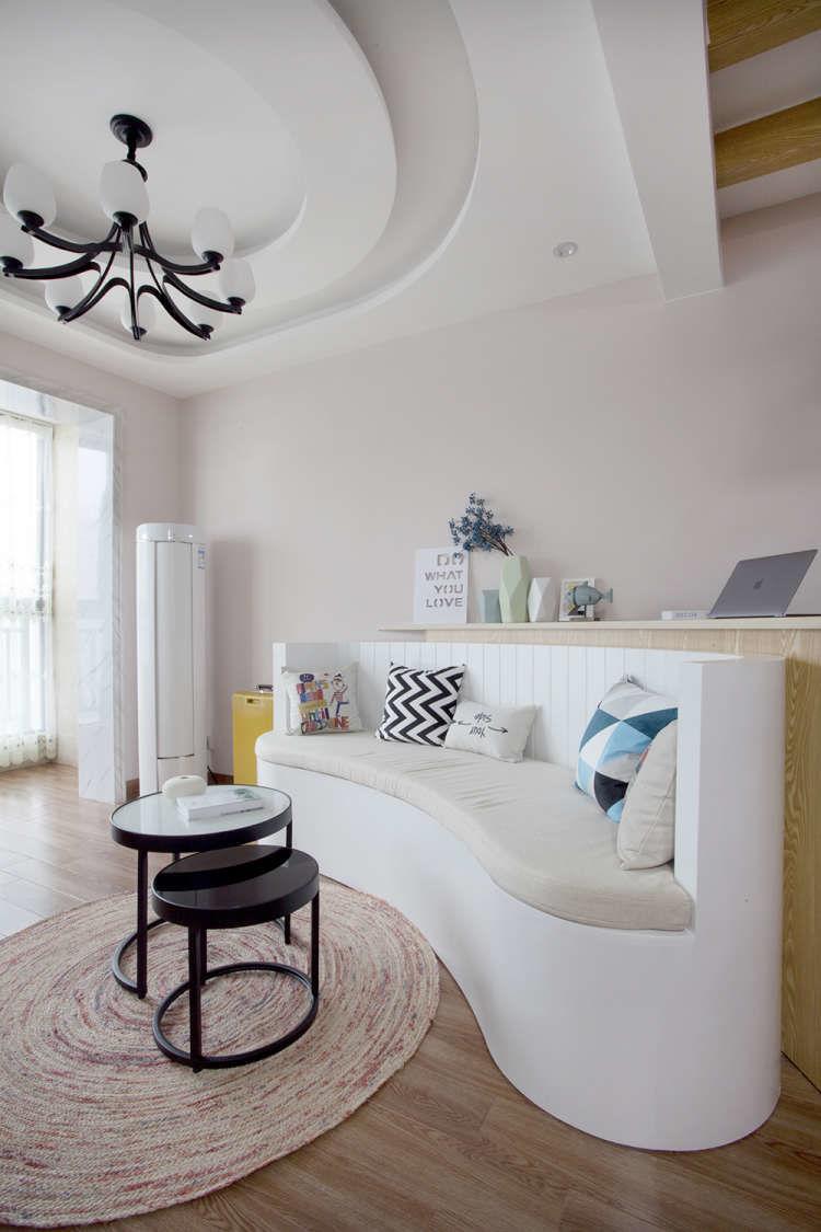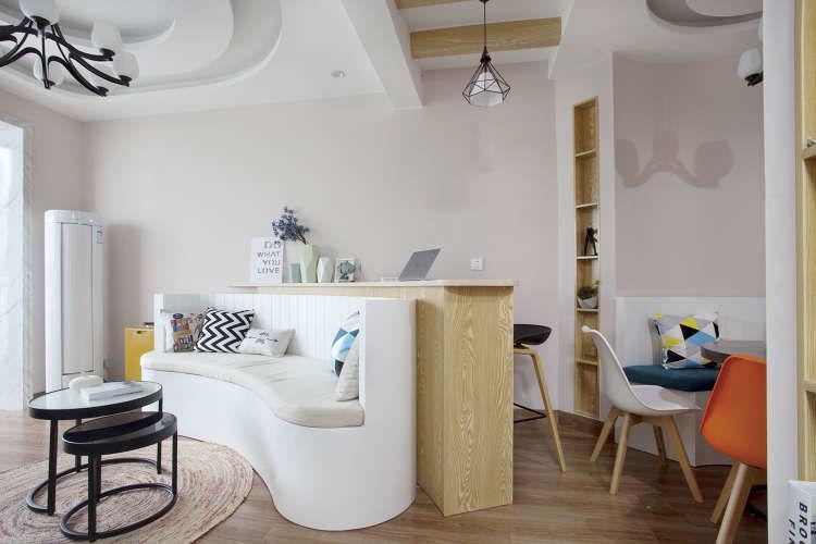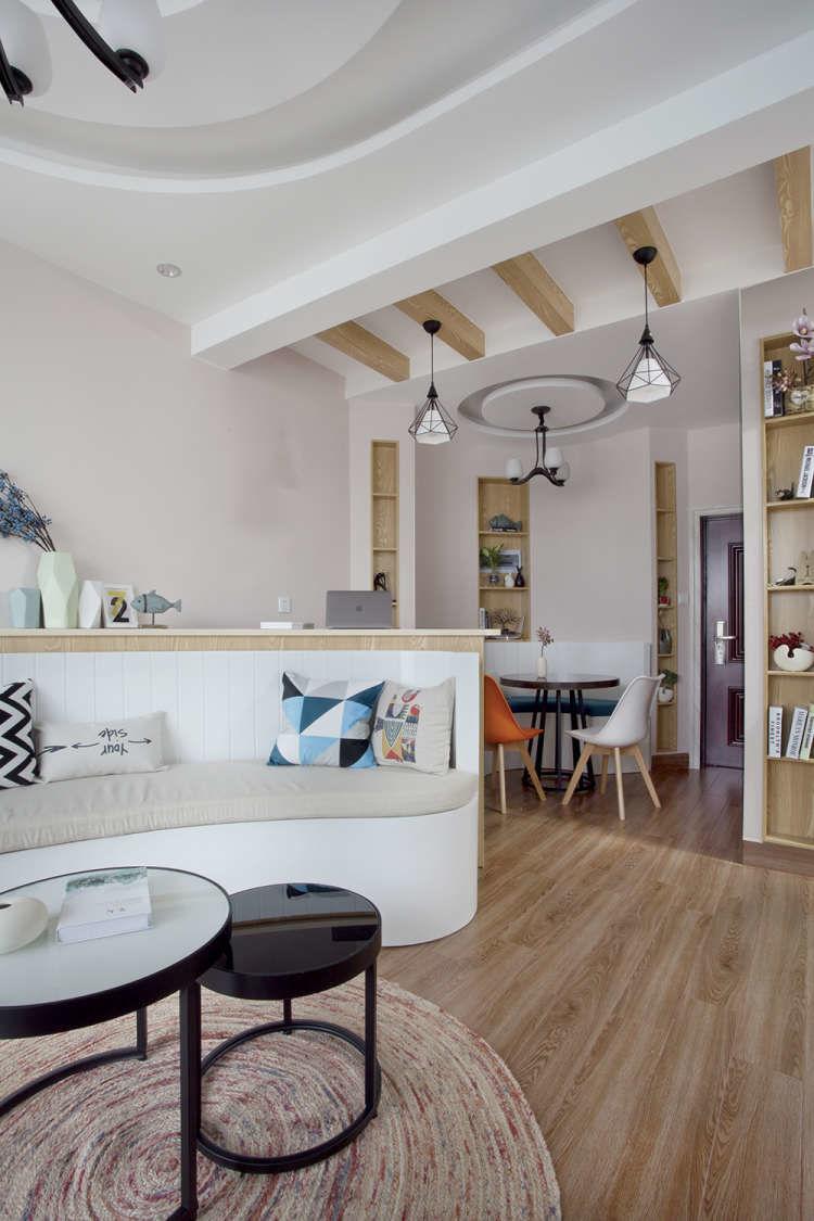 以弧形为主的设计,让这个60平米的小房子有效得到释放,宽敞不拥挤。
