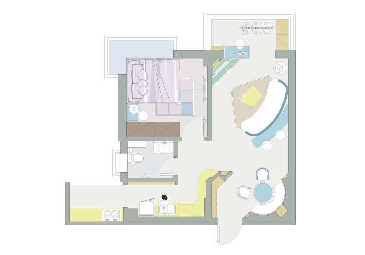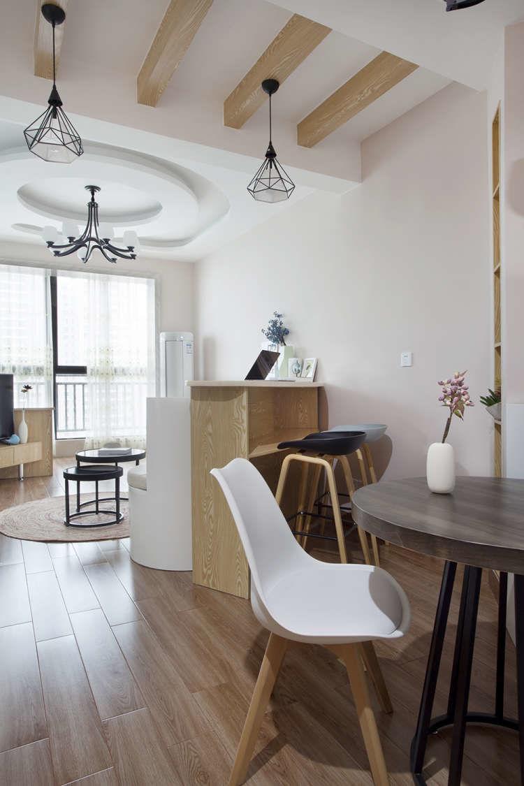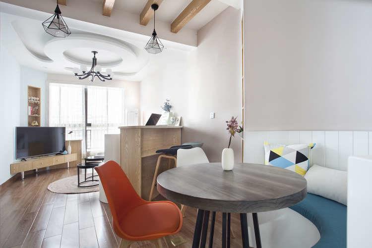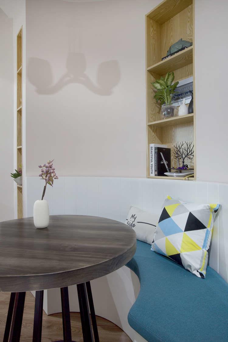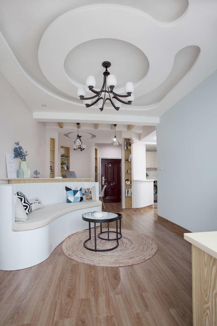 以弧形为主的设计,让这个60平米的小房子有效得到释放,宽敞不拥挤。
