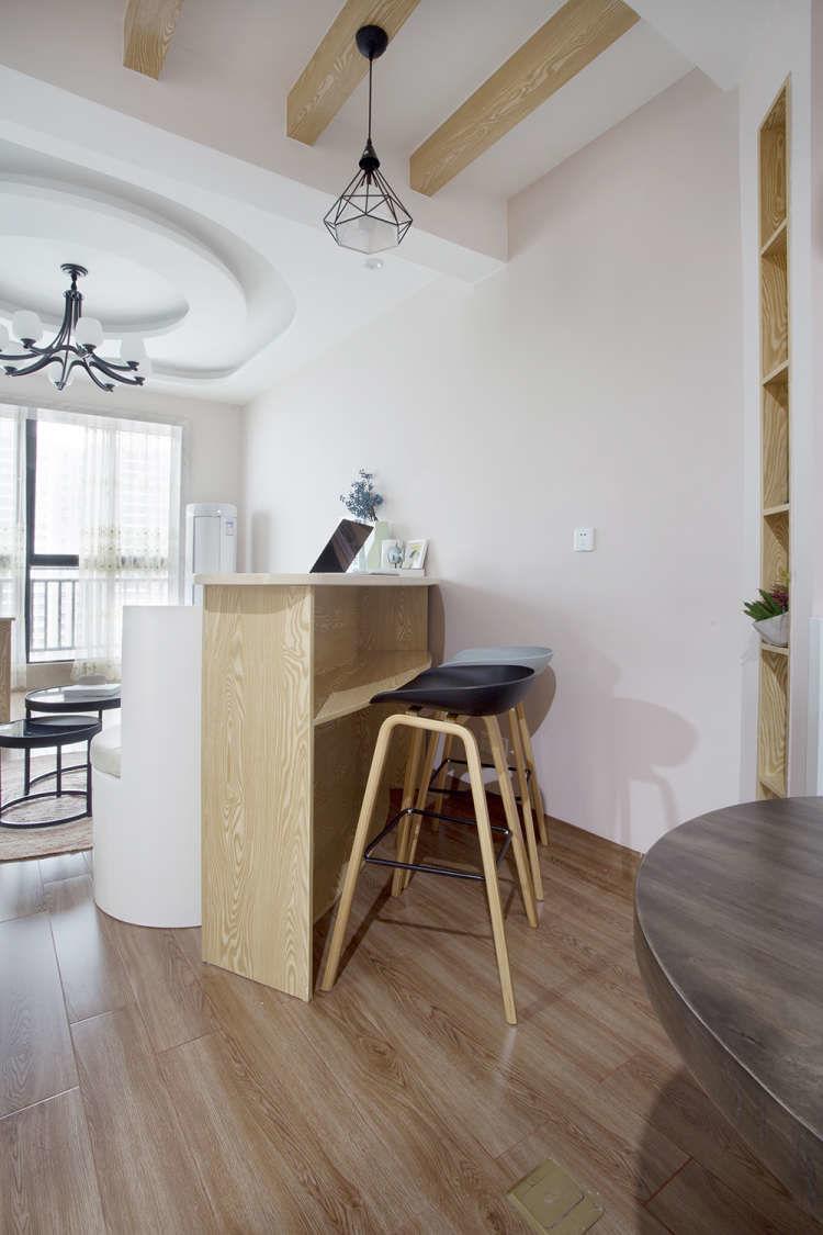 木质吧台作为隔断,分化空间里两个功能关系。