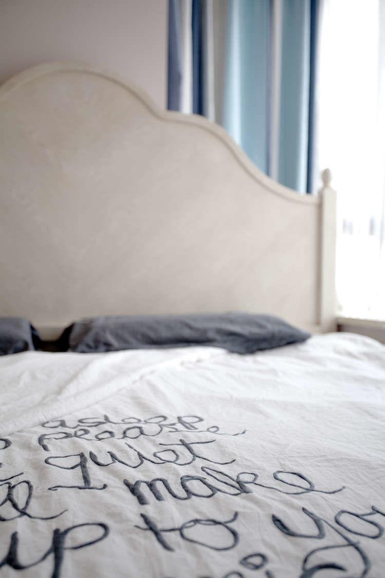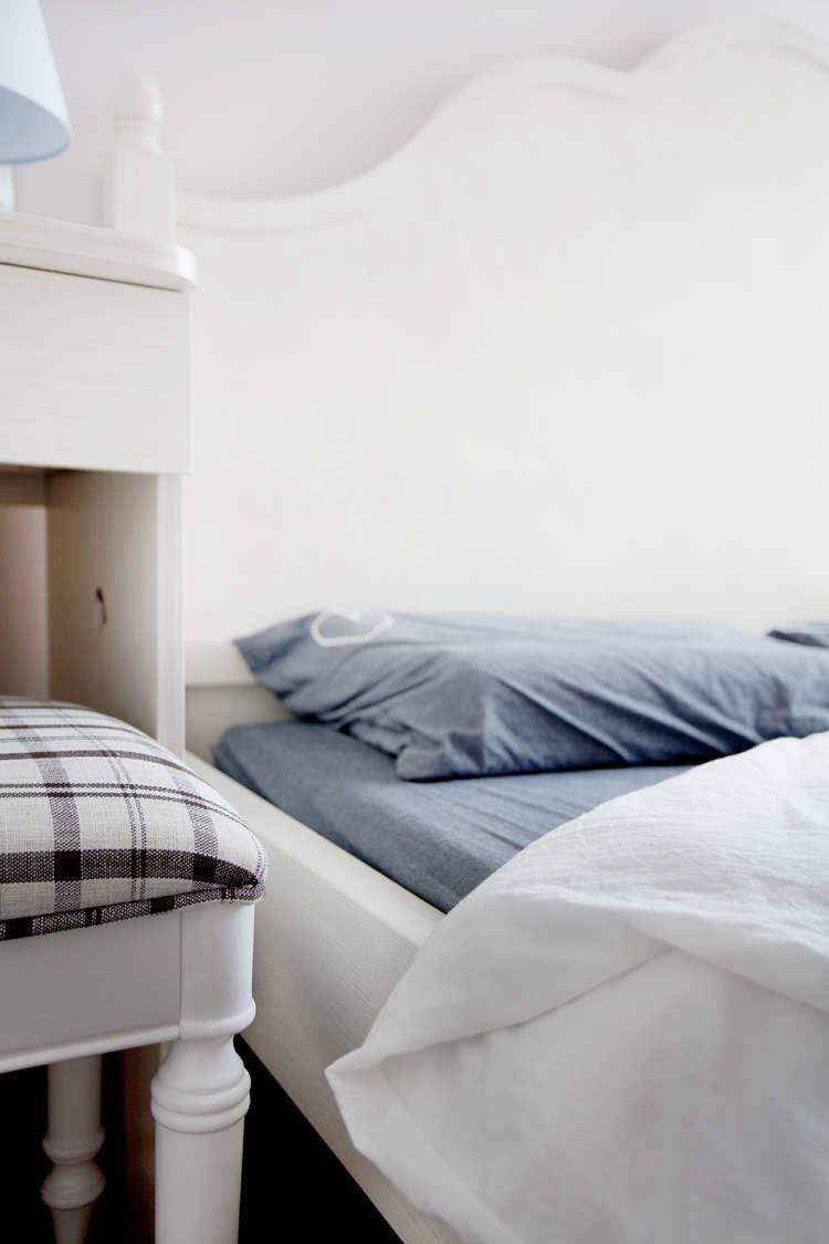 卧室的面积比较小,原本没有一个很好的摆放形式。索性将床直接依靠在飘窗的位置,好像躺在上面宽敞了不少。