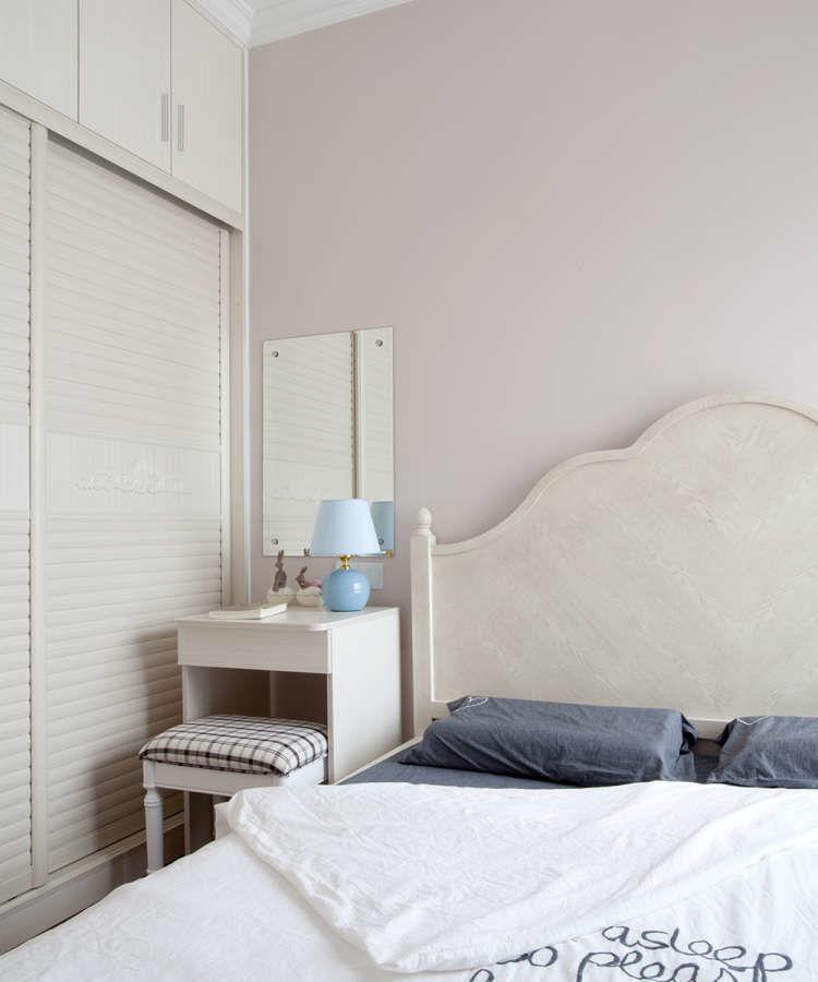 肉桂色的床头墙与白色衣柜搭配,色调丰富了不同立面的层次关系。