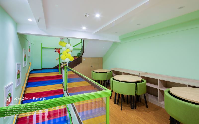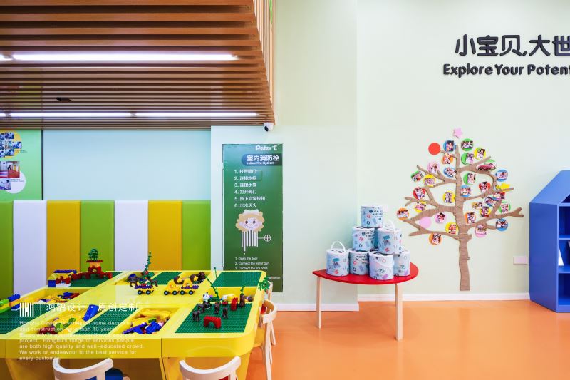 当这家早教中心找到设计师的时候,她决定为孩子们设计一个真正属于他们的空间,而非当下很多成人以为孩子喜欢的具象的装饰世界。不许变动建筑立面的限制反而触动设计师去创造一个孩子们乐于探索和停留的新世界,如果这个世界不够美好,就让我们创造一个新的吧。在冷漠,坚硬,单调的商业立面后面隐藏着一个温暖,柔软,丰富的幼儿早教,这是徐州戏剧化一面的反映。