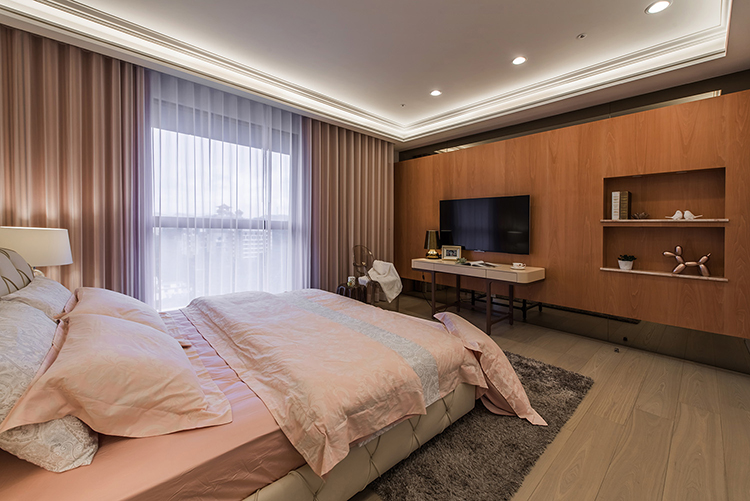 卧室的设计要轻柔,淡淡的色彩、柔和的灯光搭配柔软的床品,睡在这样的卧室中,睡眠都更加安稳踏实,再通过暖色调灯带点缀,让整个卧室即实用又浪漫。