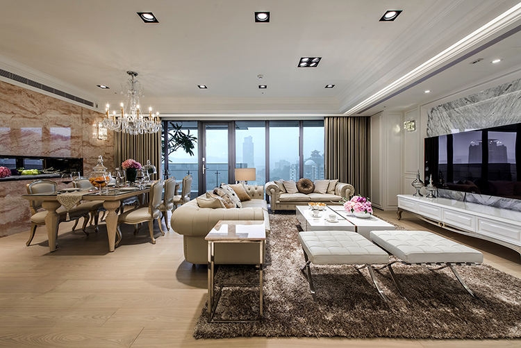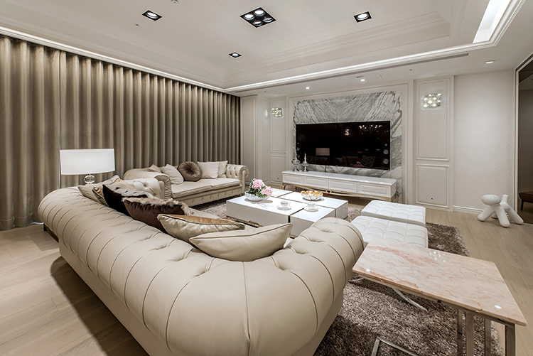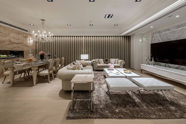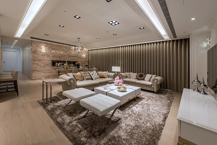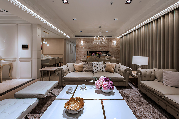 在设计起居室空间的时候,整体沿袭古典欧式风格的主元素,融入了现代的生活元素,让整个空间有的不只是豪华大气,更多的是惬意、舒适、优雅和浪漫。