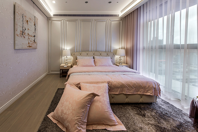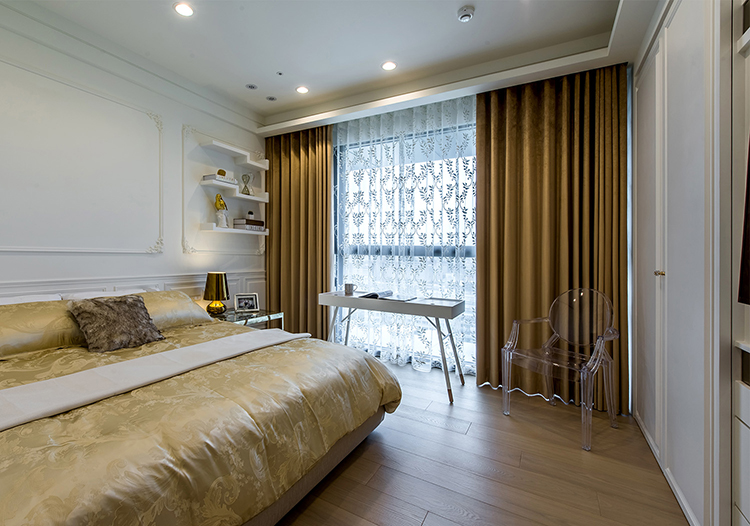 而纵观整个主卧空间的装修,豪华大气却毫不压抑,让人感觉舒适又浪漫,我们在这里养精蓄锐、放松身心,首先要实用、要感觉放松、舒服,这才是重点。