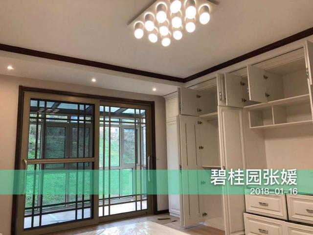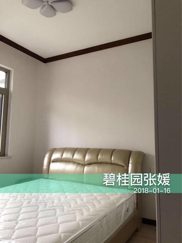 卧室的整面墙放置了通顶衣柜,再多衣服都有收纳空间了;吊顶设计并没有过多的花哨装饰,整体纯净利落。