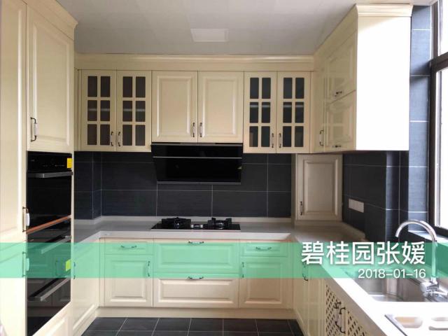 纵眼望去整套乳白色的橱柜瞬间给厨房营造了一种雅致的烹饪氛围,让人在烹饪时不由自主地生出一种幸福感。